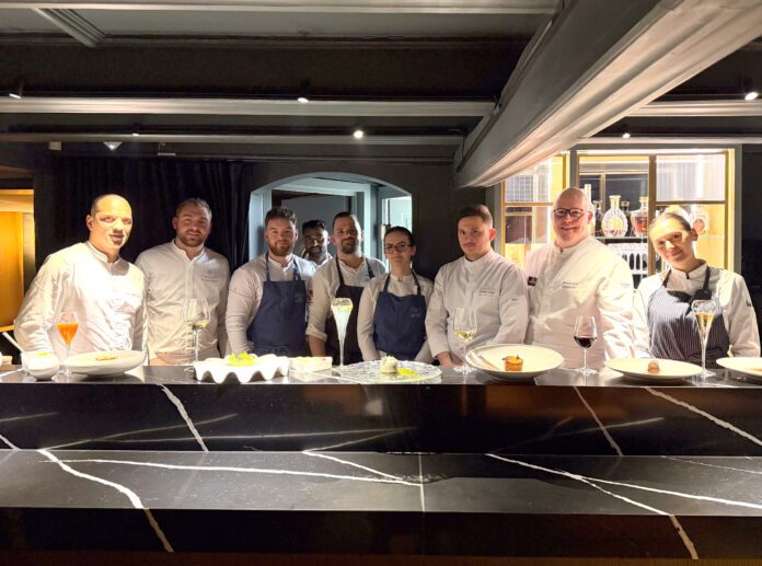 Pour l’occasion, une brigade éphémère réunissant des chefs pâtissiers issus de grandes maisons étoilées Michelin a relevé un défi rare : composer un parcours gastronomique en plusieurs services, où le sucré devenait le fil conducteur exclusif. Aux frontières du salé, du végétal et de l’amer, le dessert s’imposait comme un langage à part entière, au cœur de l’expérience. Étaient réunis autour de cette brigade éphémère Pascal Hainigue de L’Auberge de l’Ill à Illhaeusern, Jordan Gasco du Chambard à Kaysersberg, Jonathan Bunel de la Villa René Lalique à Wingen-sur-Moder, Kévin Lopes-Reach du JY’S à Colmar, Alexandre Dumel de la Maison des Têtes à Colmar, et Élise Suss du Relais de la Poste à La Wantzenau. En une soirée, les gourmets ont rencontré l’élite pâtissière de la région et dégusté, en douceur, l’équivalent de six desserts, issus d’établissements totalisant dix étoiles Michelin.