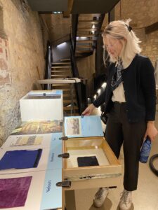 « En 2022, le PNRV a décidé de faire l’inventaire de 20 000 œuvres de ses réserves, arts de la table, mobilier, cartes postales, et parmi celles-ci 3000 pièces de textile. Le sujet a bien plu parce qu’il permet de s’identifier, et c’était un challenge pour nos équipes », se souvient-elle. Cinq personnes travaillent ainsi depuis un an sur l’exposition, se formant notamment sur la fragilité des étoffes, en plus d’un graphiste, d’un traducteur, et du concours des musées de Strasbourg, Wissembourg et Pfaffenhoffen.