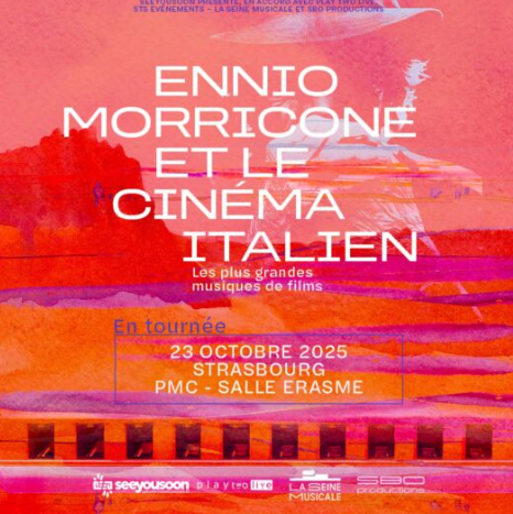 Ennio Morricone, ou l’art de composer la musique d’un film comme son inconscient et de lui donner une aura prémonitoire. Le compositeur italien, inséparable des succès les plus mémorables du cinéma, apporte aux films, grâce à ses bandes originales, une dimension dramatique et psychologique plus profonde encore. Les compositions de Nino Rota viennent relever ce concert dédié aux plus grandes musiques du cinéma italien et au « Western spaghetti ». Un voyage au cœur de l’Amérique, du grand Ouest fantasmé, filmé par Sergio Leone (Il était une fois dans l’Ouest, Lebon, la Brute et le Truand, Pour une poignée de dollars…), jusqu’au sud sacré de Roland Joffé (Mission), au plus italien des polars français signé Henri Verneuil (Le Clan des Siciliens). Au P.M.C Strasbourg à 19h.