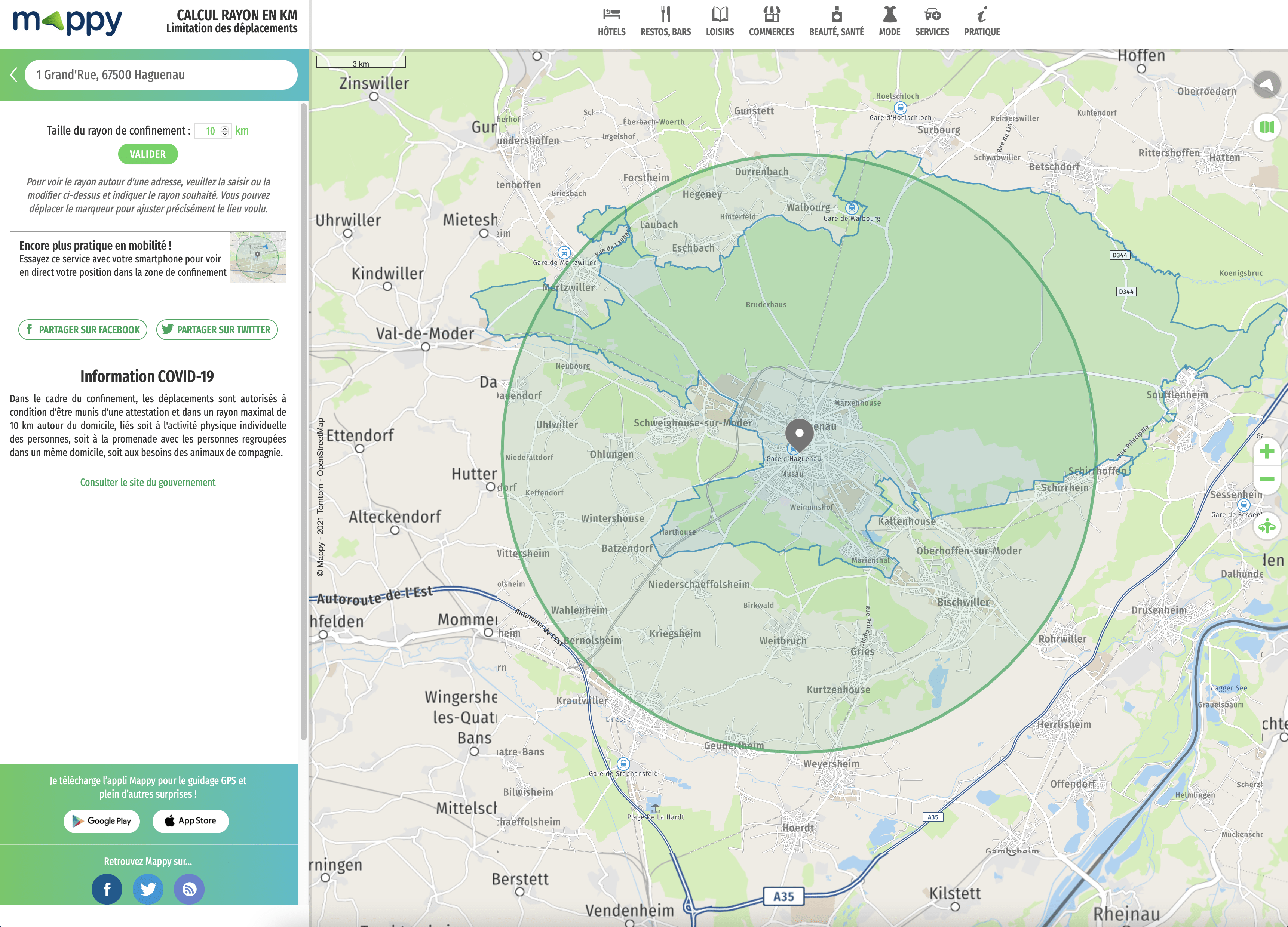 Pour calculer ces 10km à la ronde, plusieurs outils existent. C’est le cas par exemple du site Mappy.