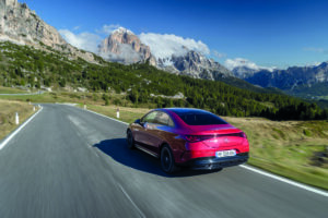 Cette boîte automatisée permet de limiter la consommation sur autoroute à partir de 110 km/h et offre une capacité de remorquage plus élevée et une vitesse de pointe de 210 km/h. Le CLA électrique est le premier véhicule Mercedes-Benz à être équipé d’une pompe à chaleur air-air. Tout cela ajouté à l’aérodynamique exceptionnelle du CLA 250 +, lui permet, malgré son poids de 2,055 t, d’afficher une autonomie WLTP record de 752 km. Dans les faits, lors de notre road-trip, comportant des autoroutes ou voies rapides et des routes sinueuses en montagne propices à une bonne régénération, nous sommes parvenus à faire nos 620 km sans recharger. Nous avons totalisé une consommation moyenne de 15,1 kWh/100 km, disposant encore de 8 % de notre batterie à l’arrivée. Au fil de ce périple, nous avons pu apprécier le comportement du châssis du nouveau CLA dont le train avant se montre précis et directif même si son poids élevé joue en sa défaveur dans les courbes prononcées. La suspension et les aides à la conduite jouent leur rôle à la perfection, assurant un bon confort et la sécurité.