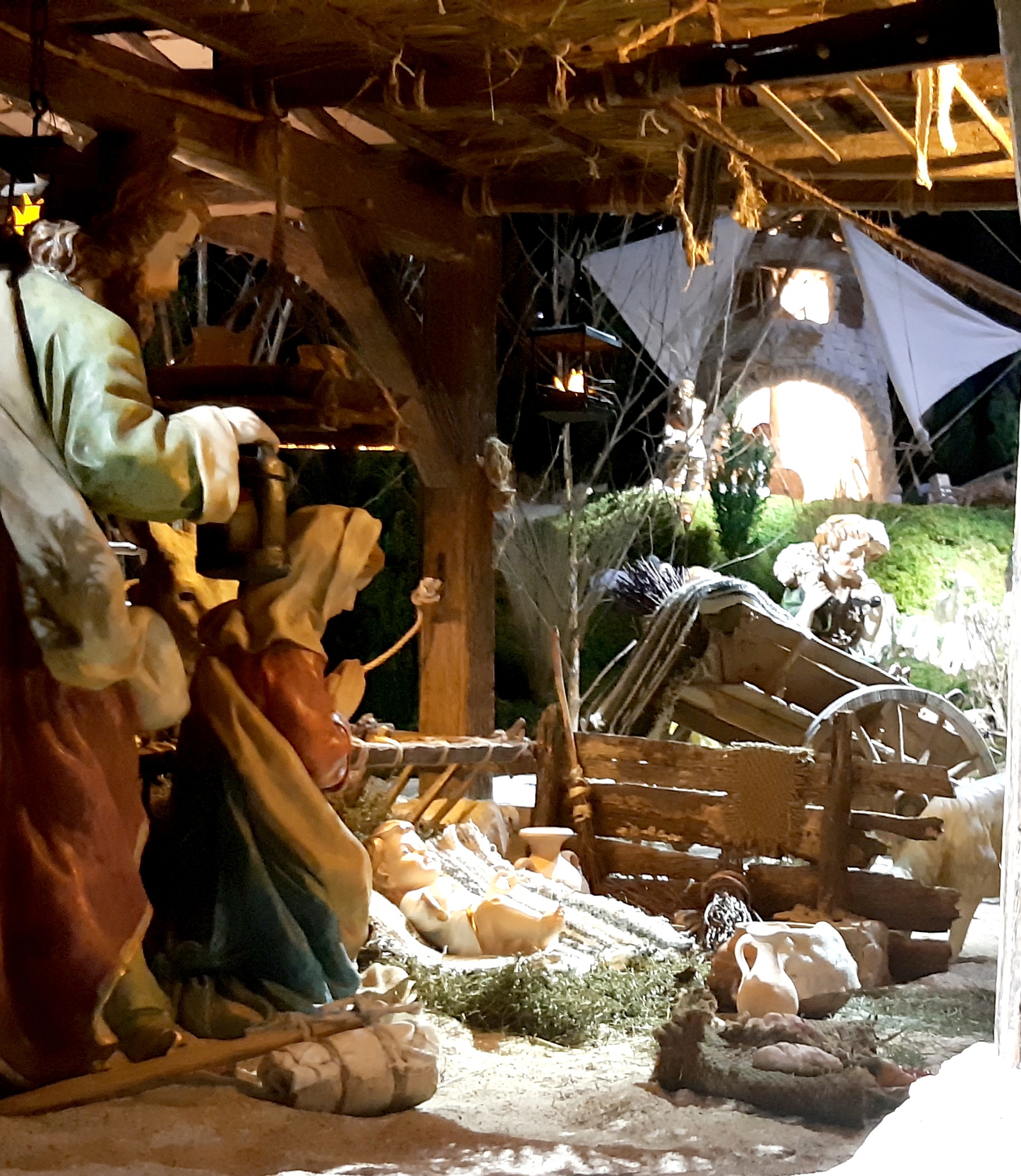 Sur une surface de 38 m², des personnages de 45 cm pour les plus grands, 20 cm pour ceux du second plan, s’affairent dans un décor de bois, de pierre naturelle, de briques, d’argile, sous une voûte céleste incrustée d’étoiles. Le tout « bricolé » de main de maître par Gabriel Kempf, électricien de métier. « En 2003, mon oncle m’a demandé de vérifier le circuit électrique de l’ancienne crèche que je connaissais depuis que j’étais servant de messe, et en 2004 je la démontais pour tout recommencer à zéro », se souvient-il.
