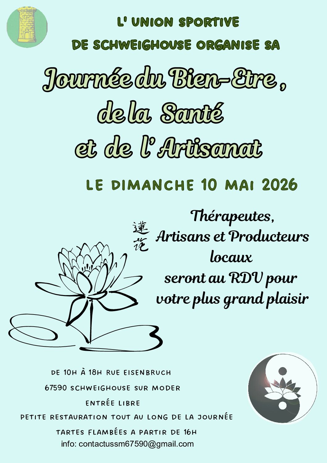 L'Union Sportive de Schweighouse sur Moder, organise sa journée du bien-être, de la santé et de l'artisanat le dimanche 10 mai 2026 de 10h à 18h à la salle de