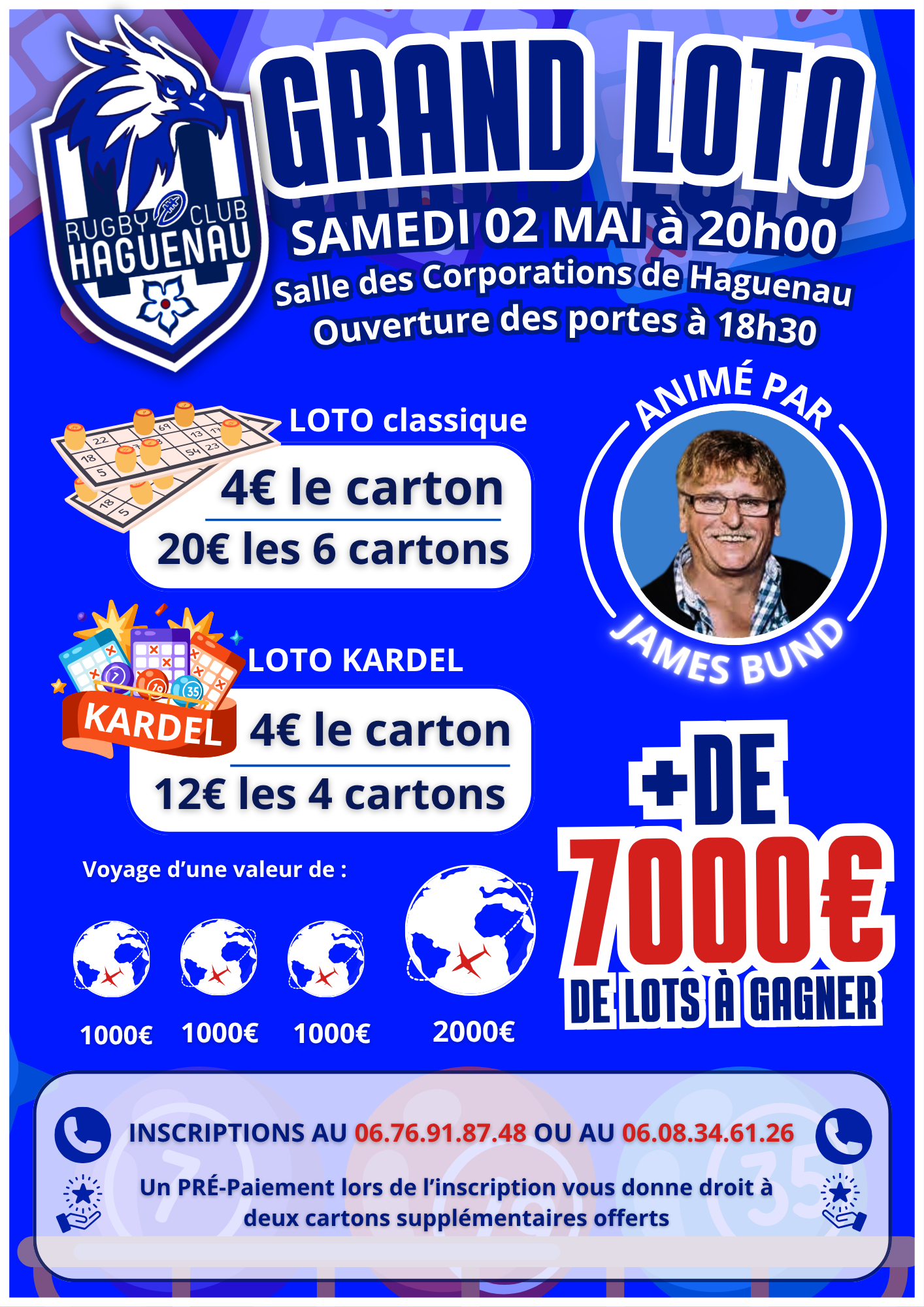 Le deuxième loto du RC Haguenau aura lieu le 02 mai 2026 à la salle des corporations de Haguenau ! Toujours animé par l'inusable James Bund, le loto n'attend plus