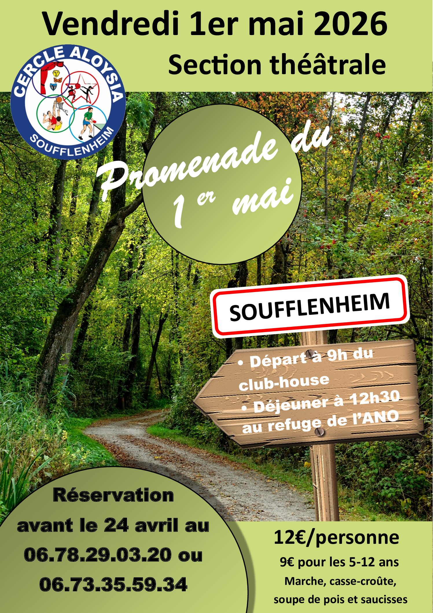 Le cercle Aloysia, section théâtrale, organise une promenade le vendredi 1er mai. Départ à 9h du club house. Déjeuner à 12h30 au refuge de l'ANO. Tarif : 12€/personne,