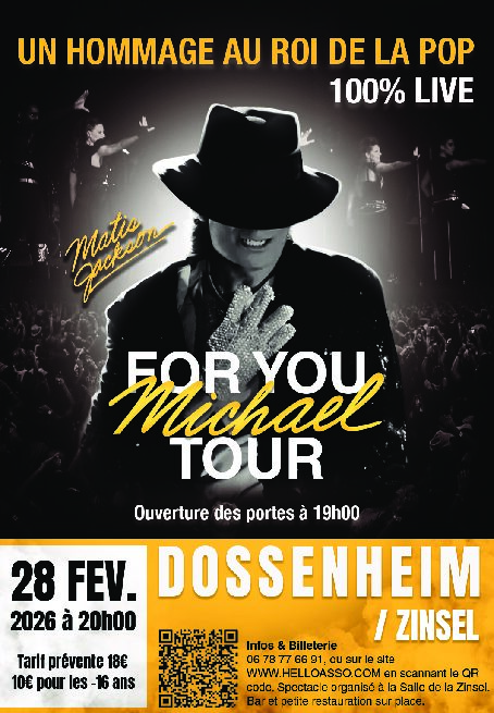 Un hommage 100 % live au Roi de la Pop le samedi 28 février 2026 salle de la Zinsel à Dossenheim sur Zinsel ! Les fans de Michael Jackson ont rendez-vous