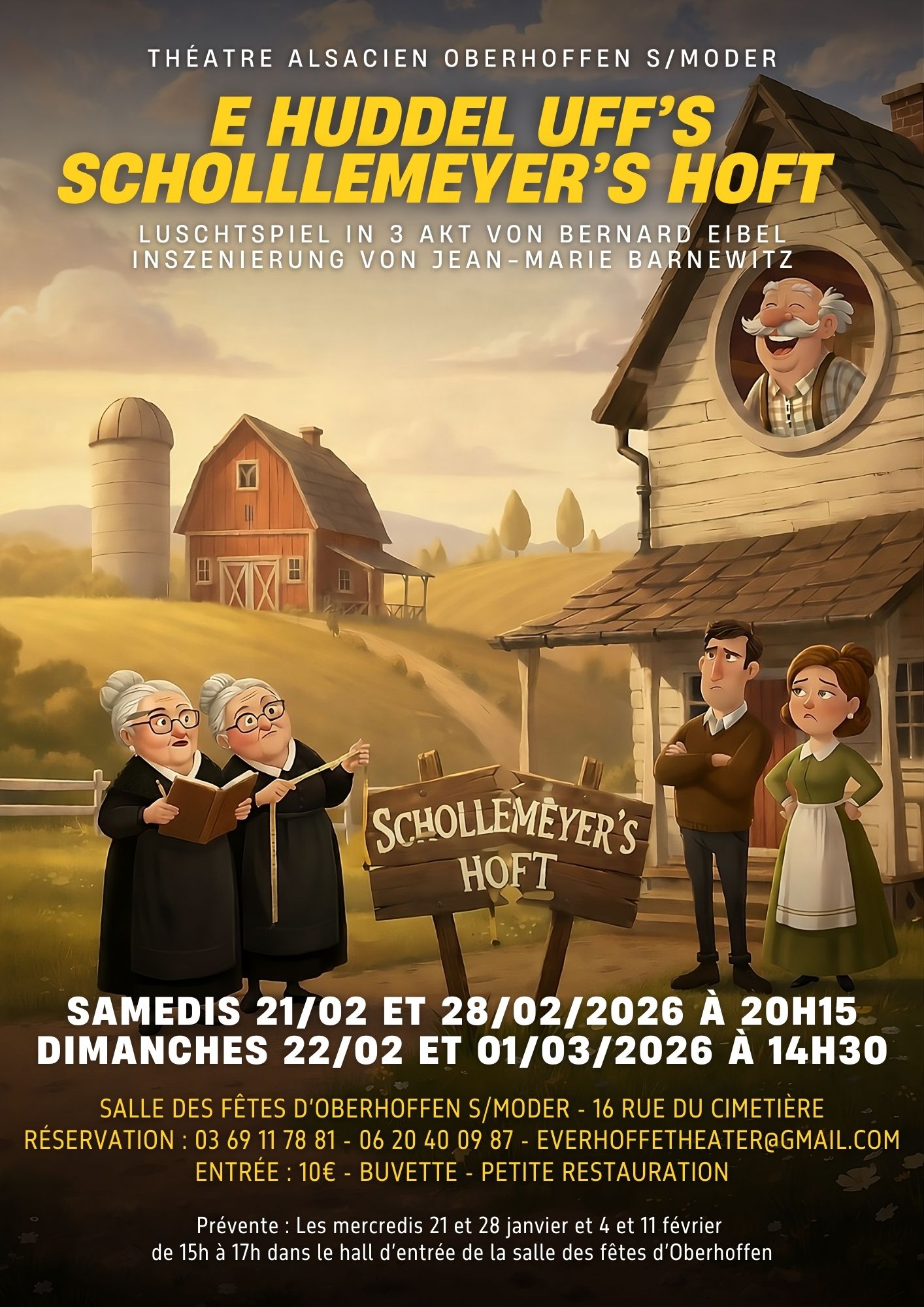 Le T.A.O. (Théâtre alsacien Oberhoffen-sur-Moder) présente sa nouvelle comédie : "E Huddel uff's Schollemeyer's Hoft", de Bernard Eibel et mise en scène par Jean-Marie Barnewitz. Représentations les samedis 21 et