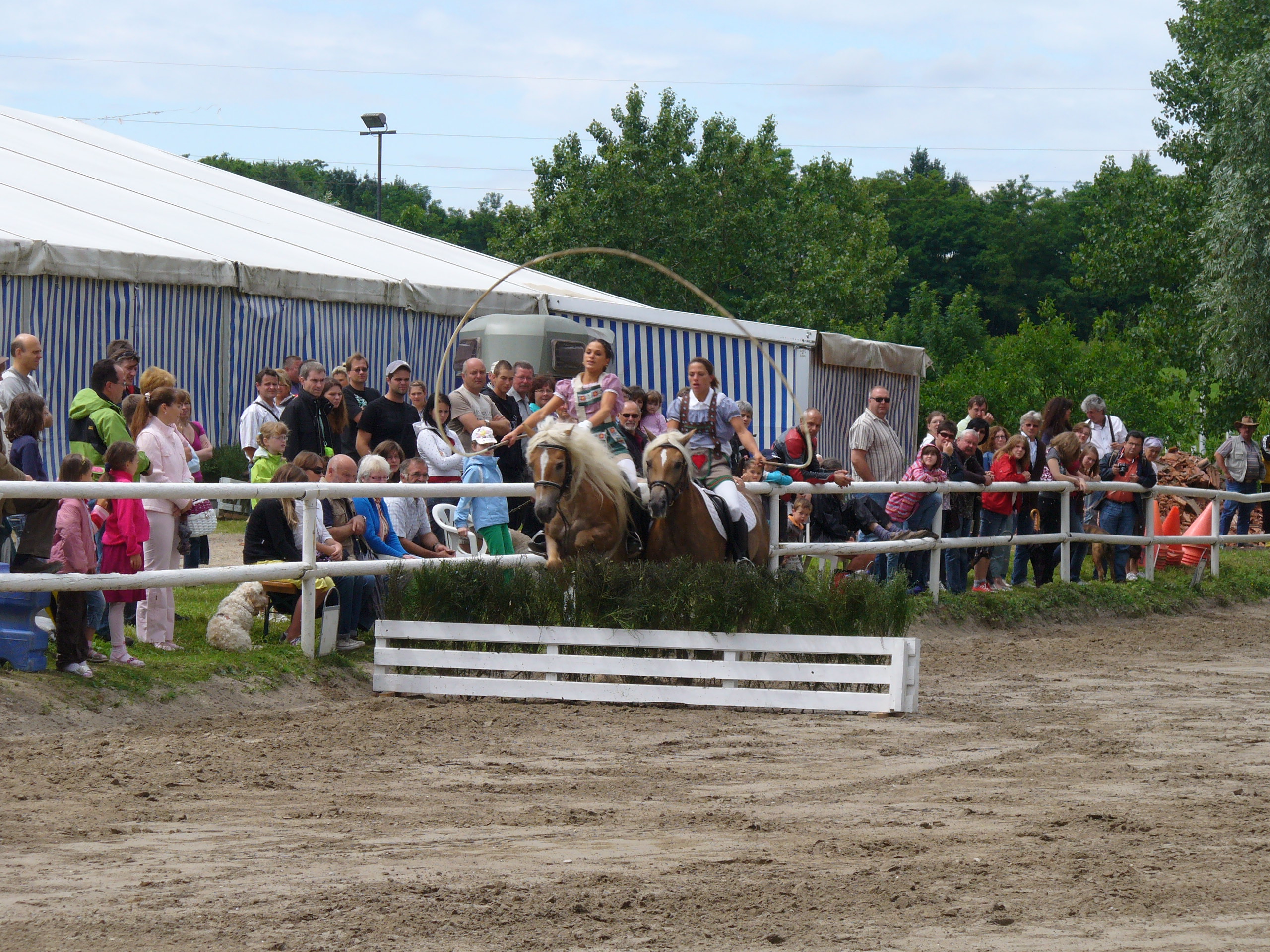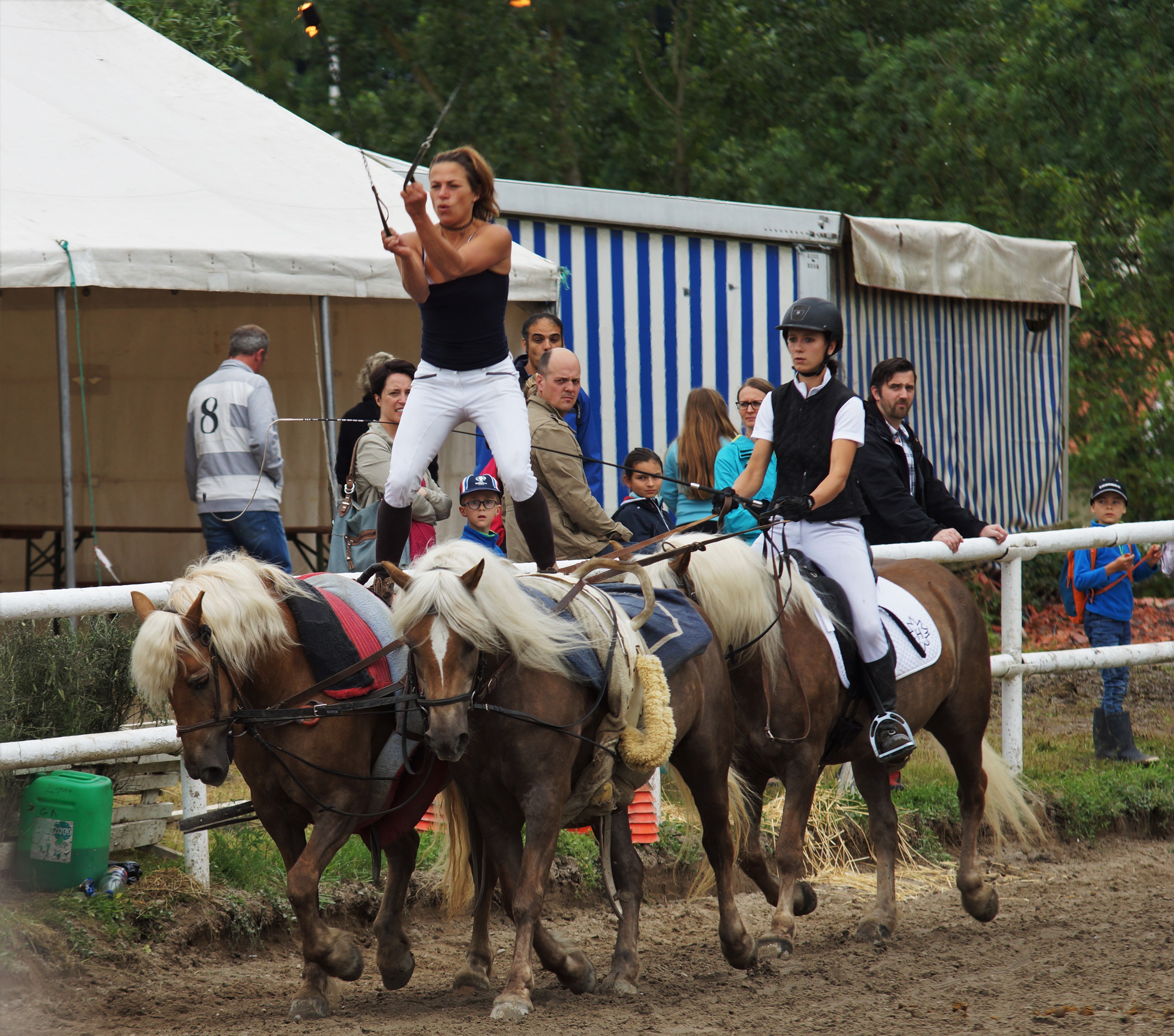 Ce week-end, sur la nouvelle carrière de 1 200 m², retrouvez-les avec les membres du Haras, pour un programme impressionnant : reprise en tandem, char romain, saut à la corde, poste hongroise (cavalier debout sur deux chevaux), pyramide, carrousel de