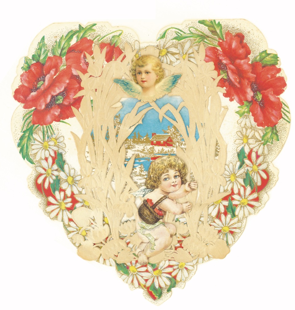 Parmi ces 30 000 cartes d’amoureux, 300 sont des “Valentine” d’Amérique, ces magnifiques cartes, gaufrées ou dentelées qui s’ouvrent, et qui affichent de délicieuses saynètes amoureuses.