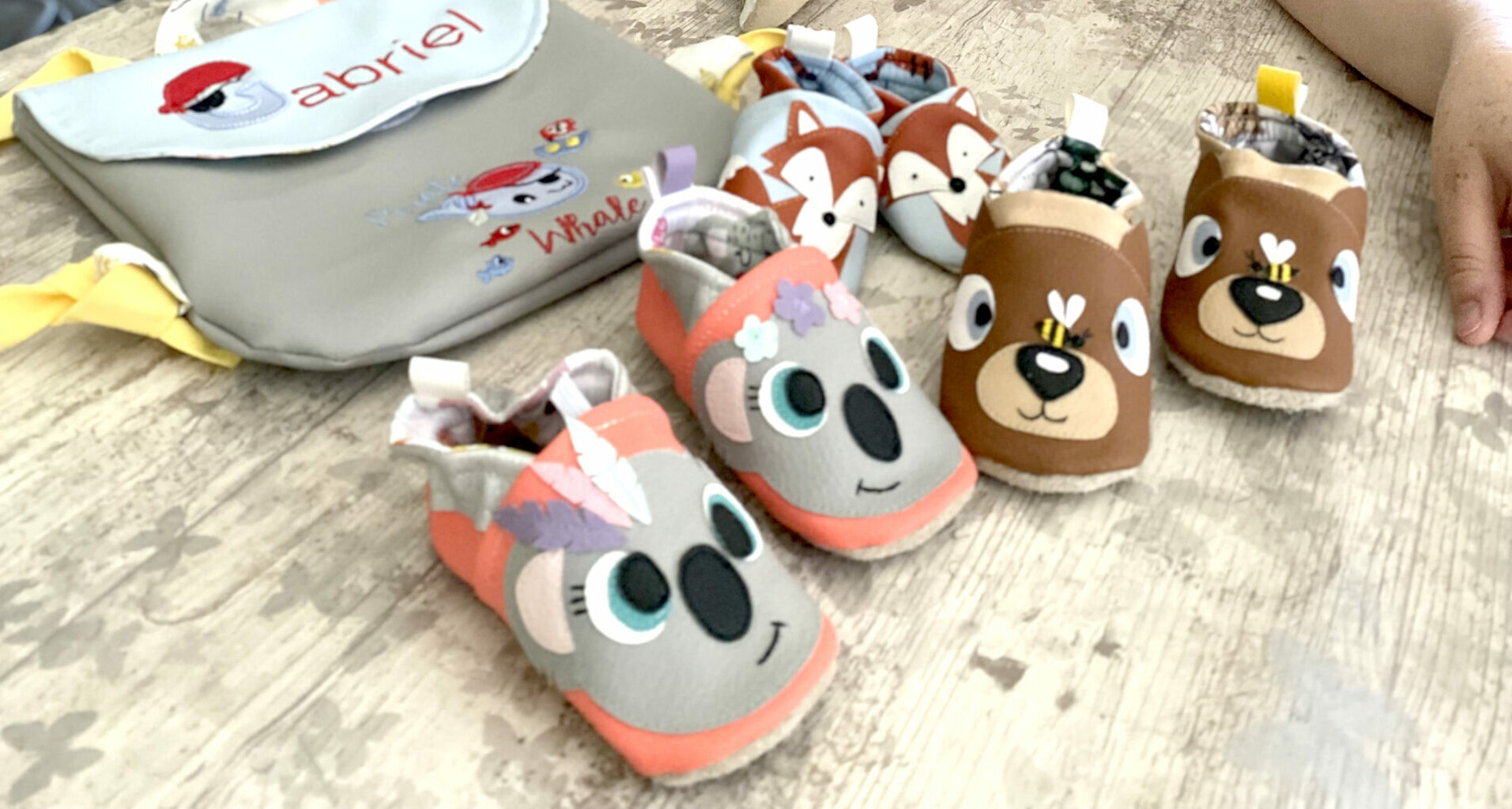 C’est exactement le principe qu’a adopté Bénédicte depuis 2020 : personnaliser les chaussons en cuir (pour la semelle), simili cuir et tissu à la demande. Mais tout a commencé lorsqu’elle a été arrêtée pendant sa troisième grossesse, et pour s’occuper, a « envoyé [son] mari acheter une machine à coudre. Une amie est passée pour m’apprendre, et avec YouTube et Internet, j’ai commencé à coudre des petites choses pour Lucas ». De fil en aiguille, elle publie ses créations sur Facebook, son entourage lui en commande, et puis « les pieds grandissent, on me demande un camion de pompier, un panda… »