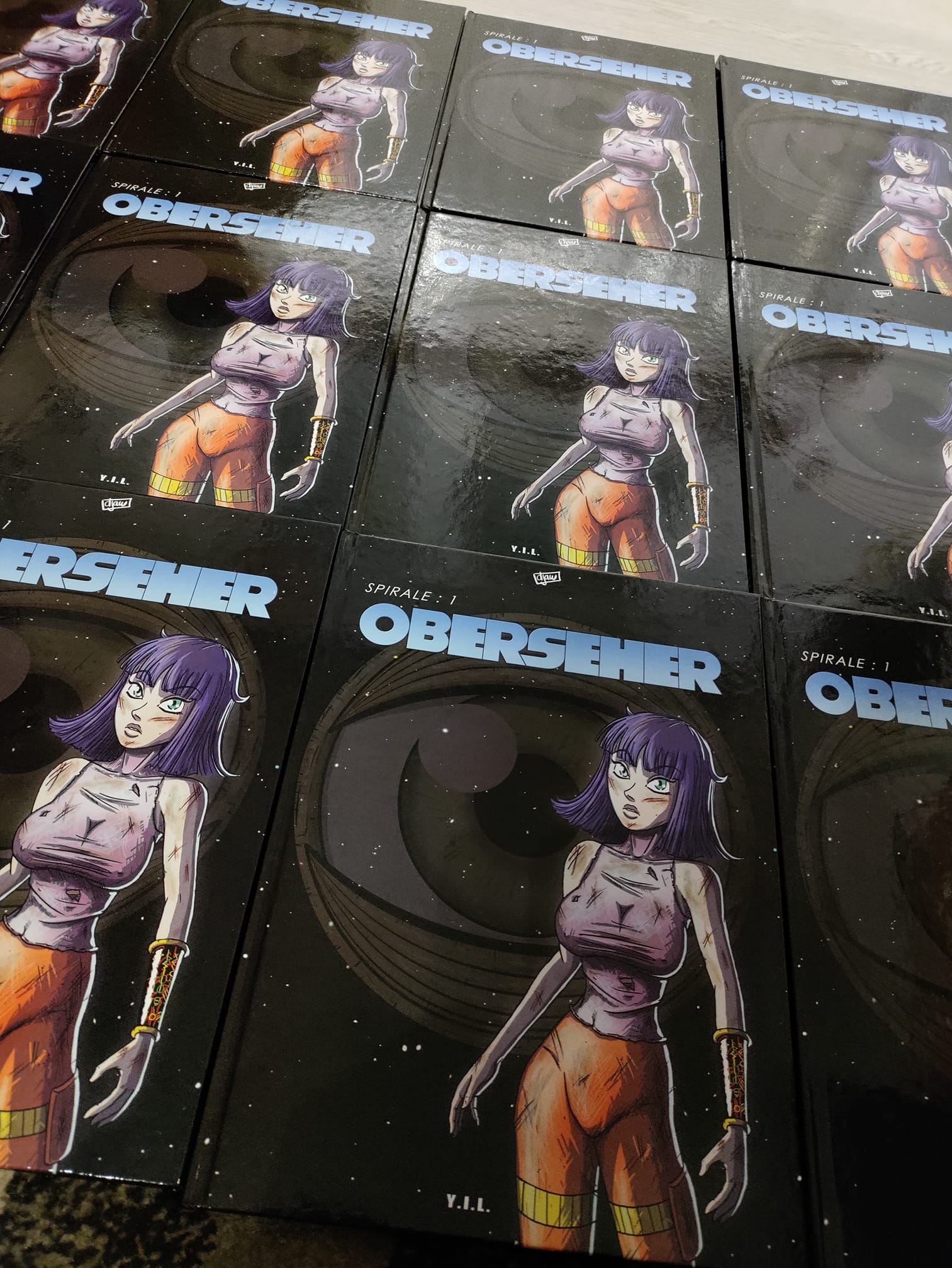 « J’ai réalisé l’intégralité de la BD, du scénario aux dessins. J’ai entamé ce projet en 2015 et il s’est aujourd’hui concrétisé. J’ai toujours aimé la fantaisie. L’univers de la BD est la science-fiction humoristique », déclare Djaw. Son histoire raconte l’aventure de F-33, qui parcourt la Spirale (ou la galaxie), à la recherche de légendaires artefacts. Elle se fait embaucher par le roi Blaukatz III, dirigeant des Fellknauel, une race de félins extraterrestres pantouflards, mais civilisés, qui la charge de retrouver un mystérieux objet, l’Oberseher, sur une planète non répertoriée.