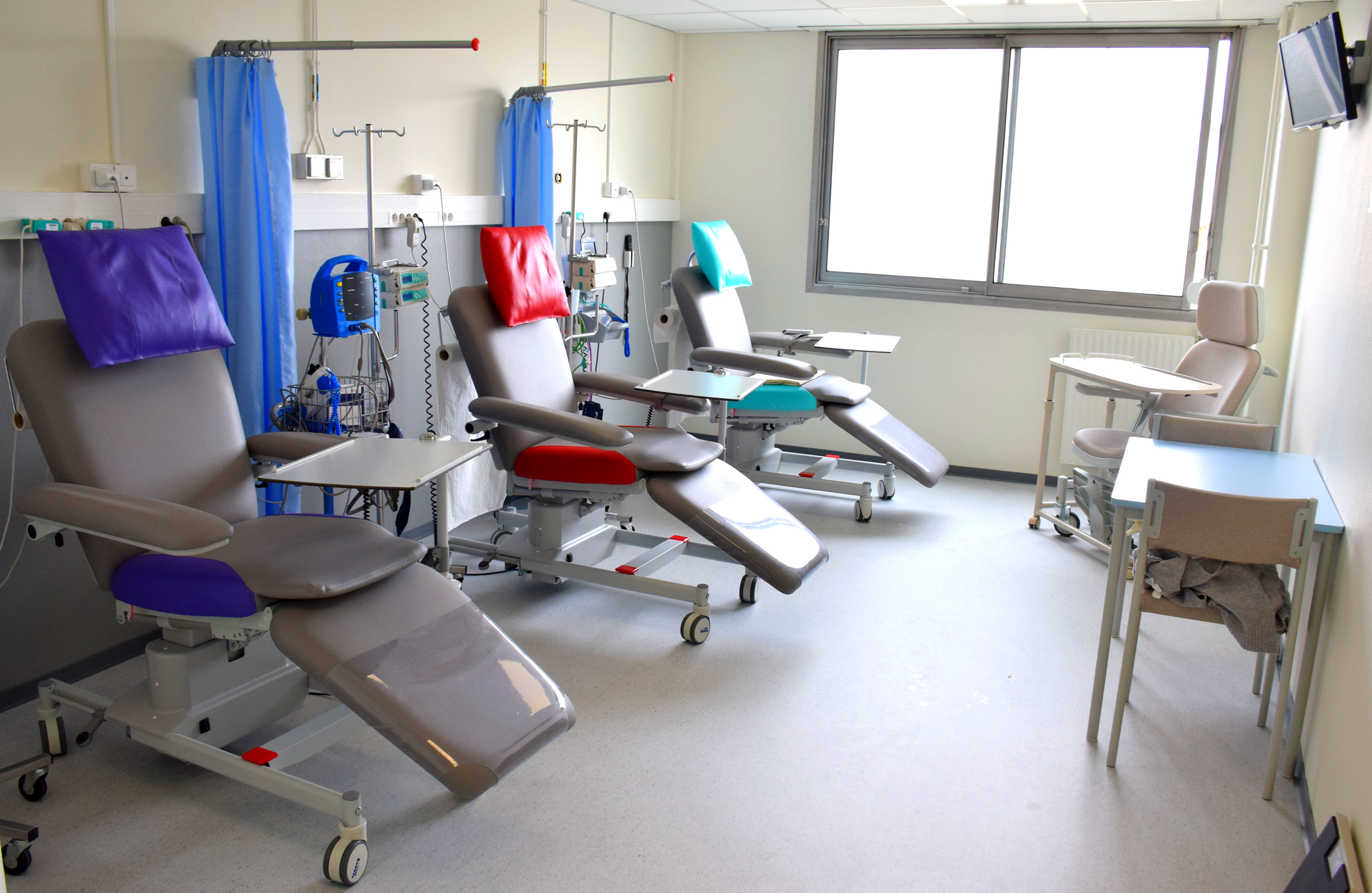 Pour ce faire, l’établissement a complètement revu une de ses chambres et l’espace d’attente. Trois fauteuils convertibles ont remplacé deux lits simples. Des paravents ont été installés pour permettre de conserver son intimité : « C’est une demande qui a été formulée par plusieurs patientes », ajoute Véronique. La salle d’attente a été rénovée. De nouveaux téléviseurs et un casque de réalité virtuelle ont été achetés. Pour Cathy Zimpfer, cadre de santé à l’hôpital de Haguenau, ces dons sont vus comme « un sentiment agréable, de soulagement. Avec les nouveaux fauteuils, on a pu créer de la place tout en réduisant le nombre de patientes en même temps dans une chambre. On a des retours positifs. Elles se sont senties écoutées. Avec de nouveaux dons, nous pourrions acquérir de nouveaux fauteuils, améliorer la décoration, et même racheter un nouveau casque de réalité virtuelle. »