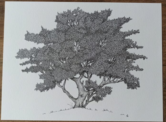 Mais je suis nul en dessin, alors j’ai commencé à m’intéresser aux artistes sur Pinterest et Instagram et à les copier. » Divorcé depuis trois ans, il veut se détacher de la télé les semaines sans ses filles et va consacrer ses soirées à « se focaliser sur les arbres pour acquérir [son] propre style ». Eric tâtonne, des pourtours d’arbres d’abord, puis des arbres pleins, le papier, le stylo… « J’utilise des feutres de 3 mm, et parfois je mets mes arbres en couleur au feutre alcool qui ne marche pas sur les stylos billes. »
