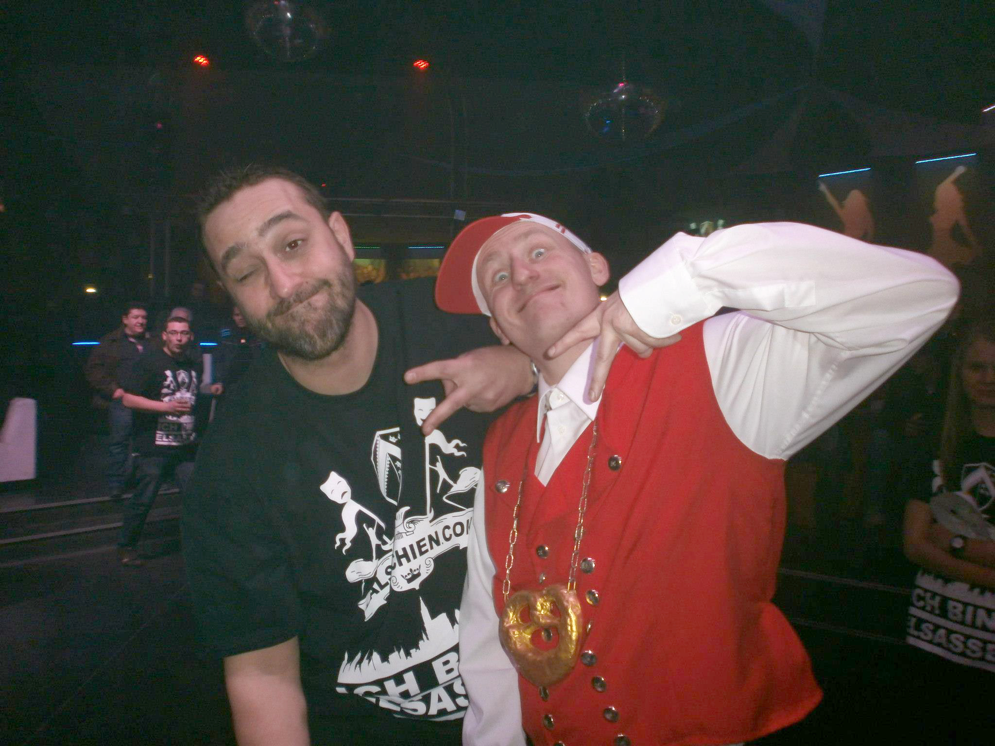 J’ai créé cette page en 2013 et c’est avec elle que j’ai fait mes plus belles rencontres. Dessus, j’ai commencé à faire des vidéos humoristiques avec des Alsaciens du coin comme Kévin Schmidt, l’Alsachien, à qui je dois beaucoup. Il m’a beaucoup mis en avant. C’est une étape importante de ma vie et ça m’a ouvert d’autres portes. J’ai aussi fait la découverte d’autres personnes, comme Mike Brandon, originaire de Schweighouse-sur-Moder, Steve Maire de No Limits et Nicolas Rieffel que j’ai connu grâce aux actions contre le cancer, ou encore Cyril Schreiner, un célèbre créateur de vidéos alsacien, qui cumule près de sept millions d’abonnés sur TikTok. Il y a aussi eu Laurent Arnoult, que j’ai connu quand il est venu se produire à Brumath. On s’est présenté et on s’est lié d’amitié. J’ai aussi été en lien avec Marcus et l’équipe de Game One. On s’est rencontré plusieurs fois, on a mangé ensemble et on a fait des émissions, en lien avec le dialecte alsacien. Par la suite, j’ai continué à réaliser des sketches avec des Brumathois et d’autres originaires de la région, notamment dans La Maison des Secrets en Alsace ou encore La Picole Municipale.