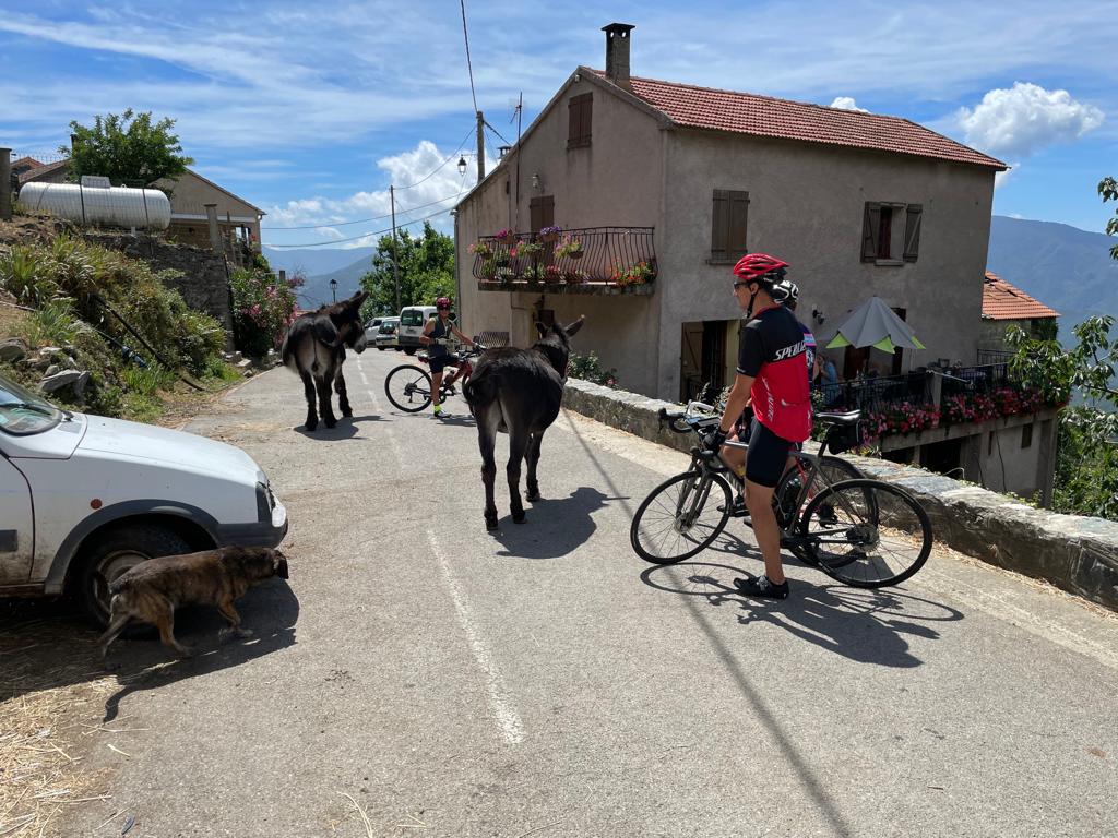 Durant sept jours, le petit peloton va parcourir entre 114 et 136 km, avec de beaux paysages, et de belles montées! Quelques mésaventures aussi, au programme : « Dès le premier jour, on a eu trois chutes, sans gravité. Entre Bonifacio et Olivese, on a vu que les cochons, ce sont les seigneurs de la route ! On a croisé des cochons noirs et des chèvres sur les routes, il faut faire attention quand même ! D’ailleurs, entre Olivese et Corte, on a eu une collision chèvre – cycliste, à 50 km/h ! Vélo cassé, une côte fêlée et deux autres enfoncées, et pourtant Luc a terminé, c’est après qu’il nous a dit ce qu’il avait ! Entre Corte et Porto, les paysages des calanques… Superbes ! Et le soir on a supporté l’équipe de France contre le Portugal à l’Euro.»