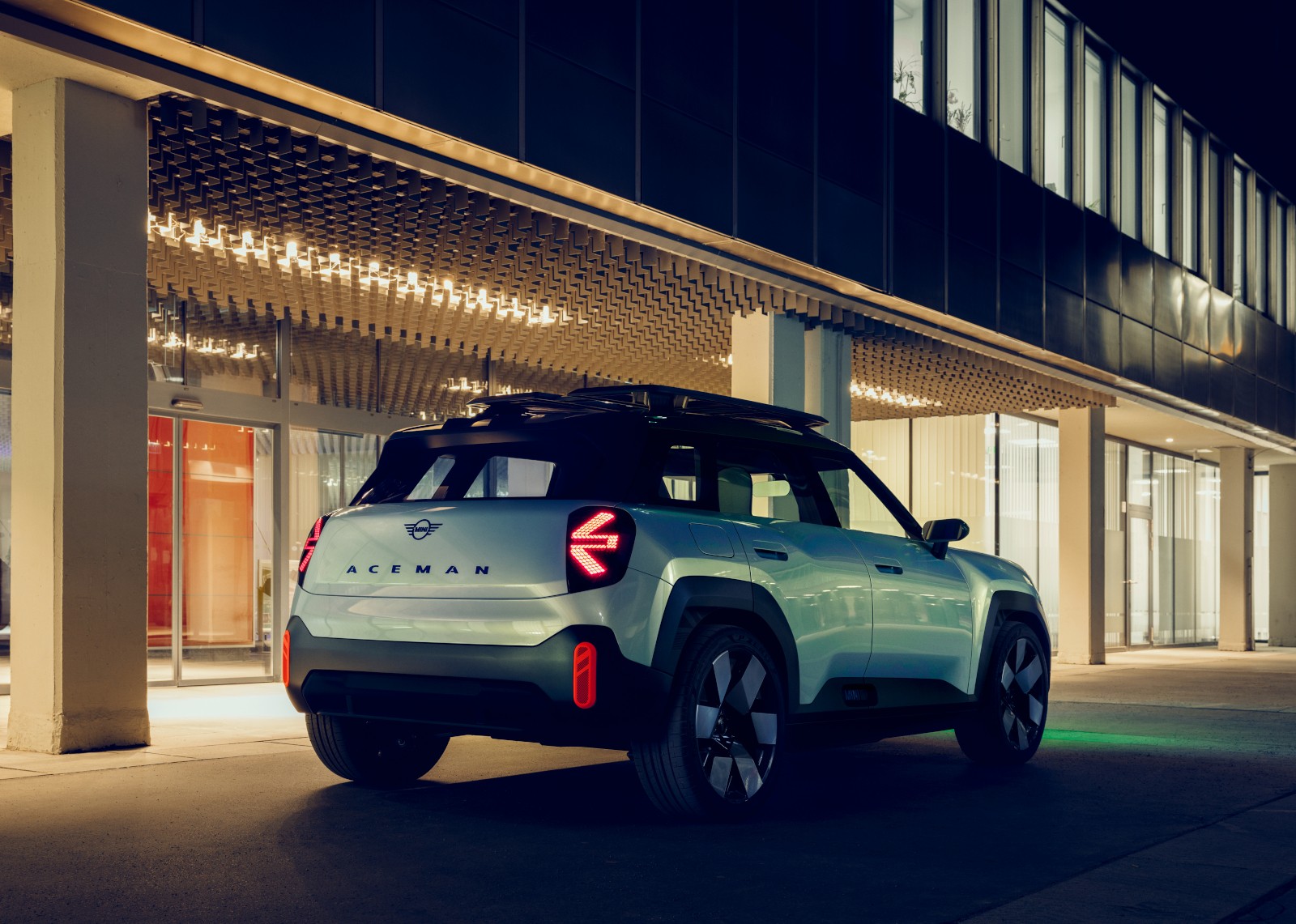 Ce début d’une nouvelle ère pour Mini se décline donc avec le Concept Aceman au travers de plusieurs éléments design comme une calandre octogonale pleine et éclairée, des surfaces généreuses structurées par des arêtes vives, des ailes athlétiques et un arrière puissant avec des feux verticaux.
