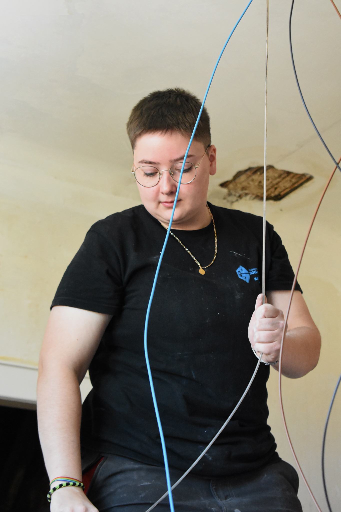 LB : On travaille toujours en duo avec Marc, mon tuteur. Il m’a appris beaucoup de choses et m’a très vite fait confiance, je suis assez autonome. Dès les premières semaines, j’installais des interrupteurs, je tirais des câbles, je plâtrais, réalisais des saignées, etc. Plus tard j’ai appris à poser des tableaux électriques par exemple.