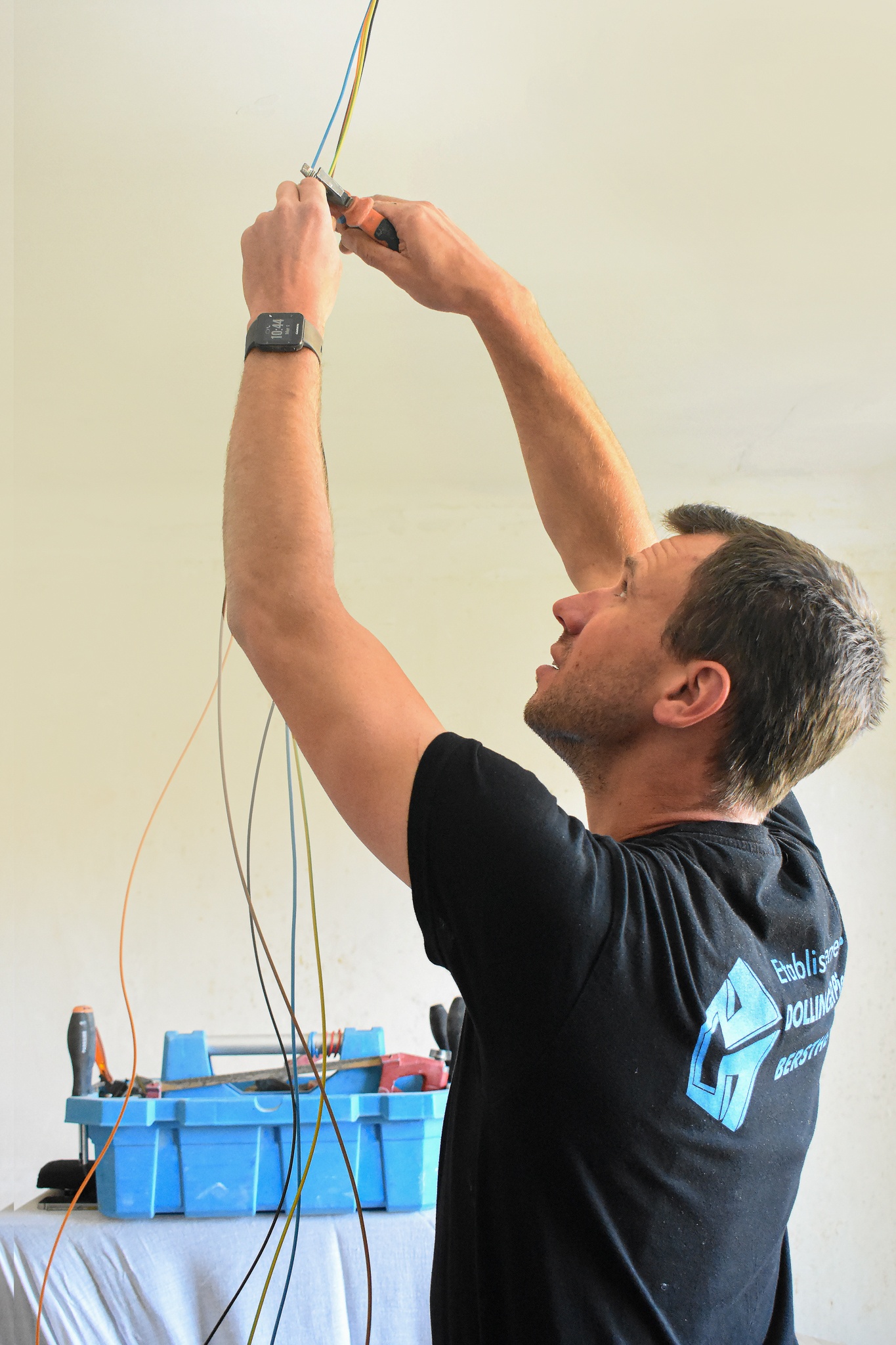 MO : Sur un chantier de rénovation comme aujourd’hui par exemple, nous allons tout remettre aux normes, démonter l’ancienne installation électrique qui date des années 60, et en installer une nouvelle. En tout, nous en avons pour environ 4 semaines de travail. Nous sommes souvent les premiers ouvriers sur un chantier : saignées, démontage, plâtrage, tirage de nouveaux fils… Et on revient à la fin, après le travail du peintre, pour poser les prises et les lampes.