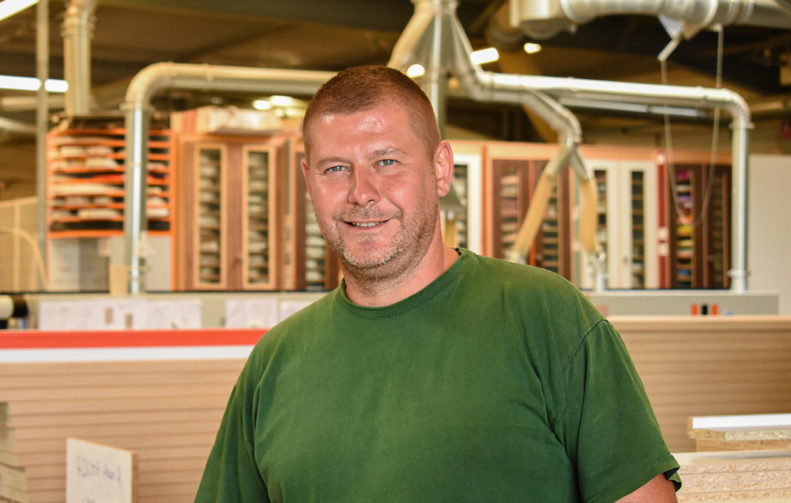 Oui ! On a les machines pour faire de l’industriel, mais on continue de créer du sur-mesure notamment grâce à cet atelier de placage. Avec une planche brute, on peut sortir un meuble, une chambranle, une porte avec des moulures… Il y a un véritable savoir-faire, comme autrefois, dans notre métier. C’est ce qui m’a toujours plu.