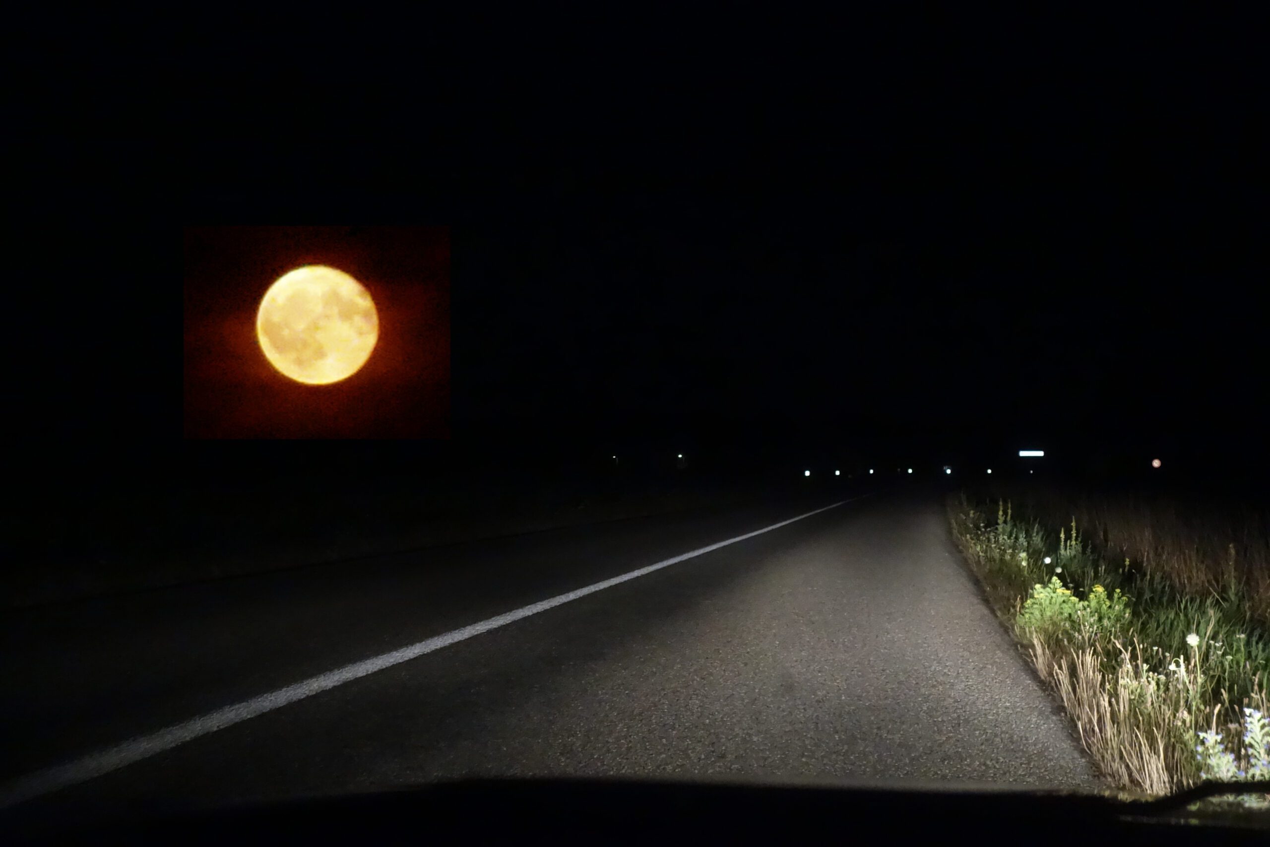 Ralentir pour l’admirer, oui c’est la lune, elle est vraiment belle, et les choses toutes simples sont merveilleuses, profitons-en, arrêtons-nous. L’astre céleste, bas sur l’horizon, rougeoie encore des derniers rayons du soleil, et on dit que la lune est rousse parce que la nuit sera froide, et qu’elle va roussir les jeunes pousses qui pointent après Pâques. En 1610, Galilée a découvert quatre autres lunes autour de Jupiter, et notre copine de ce soir ne fut plus seule.