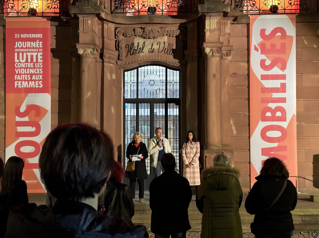 À Haguenau, le 25/11 est l’occasion de rappeler le dispositif contre le harcèlement de rue « Demandez Angela » dans les commerces et les bus, ainsi que sur 10 000 sacs à baguette. La couleur orange et le ruban blanc seront de sortie à l’Hôtel de Ville, où les prénoms des victimes de féminicides seront lus entre bougies et chansons à 17h30 sur le parvis, en partenariat avec le CIDFF et le CCAS. Au théâtre, le spectacle de danse Les chatouilles est programmé à 20h30. Infos sur www.haguenau.fr