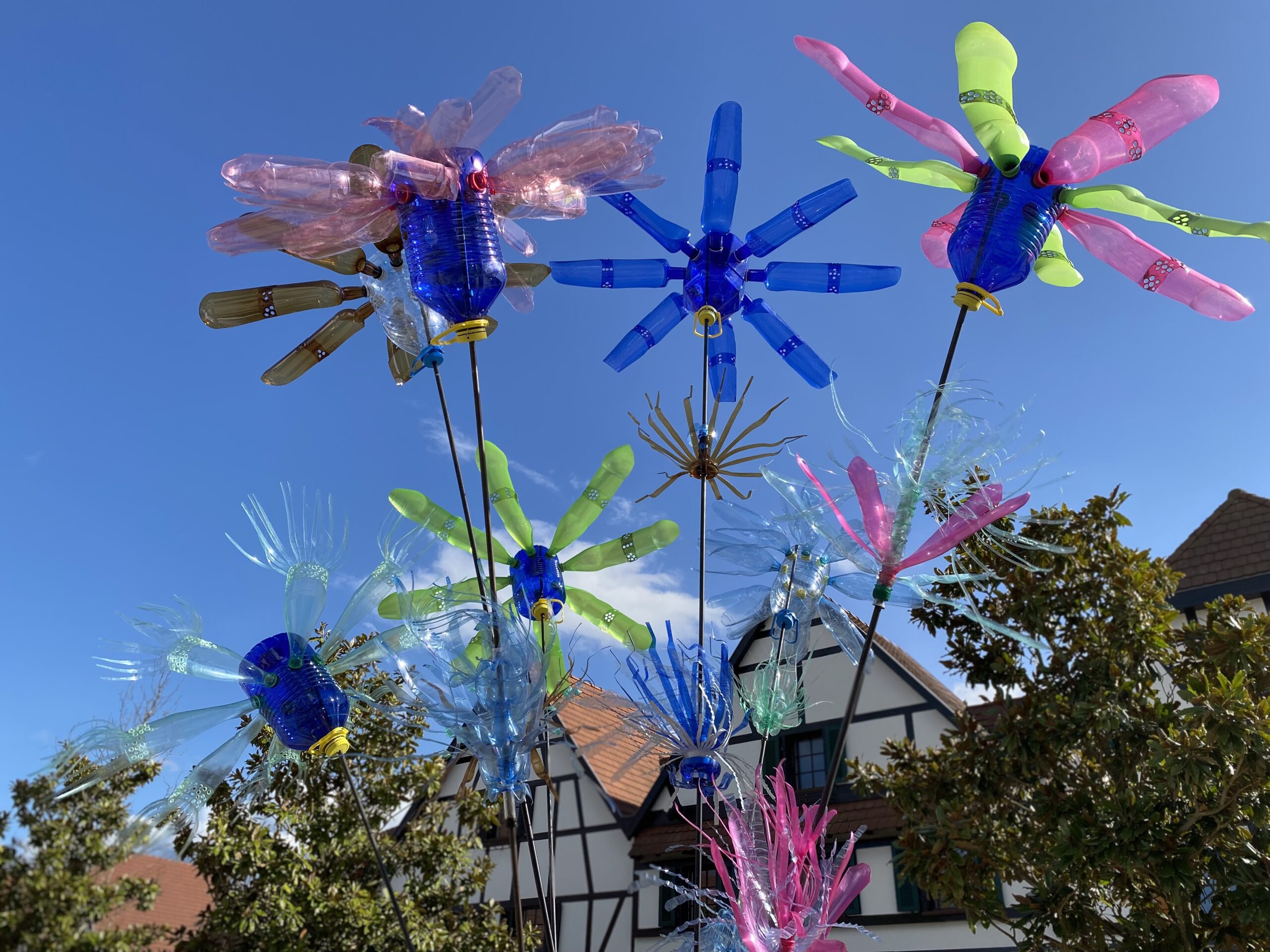 Si c’est une première dans le Grand Est, 6 000 « fleuristes du changement » ont déjà participé à plus de 300 ateliers à travers la planète, upcyclant ainsi 2 tonnes de plastique. « C’est une œuvre collective et un frisson personnel que de communiquer avec eux, une joie spontanée. » Christophe Girard, le directeur du centre de marque, les yeux dans les Sky-flowers, ne peut que confirmer cette idée de partage : « On a fait le choix d’une exposition accessible à tous, et qui sera vue par un million de visiteurs en six mois ».
