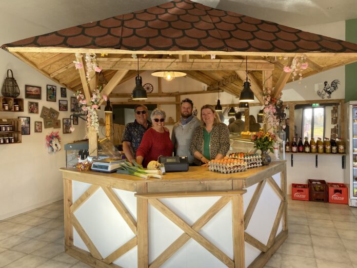 Évidemment, il continue à prêter main-forte au couple, tout comme la jeune retraitée Sylvie. Le premier est « aux grandes cultures sur 90 ha de terre, maïs, blé, orge…, que l’on commercialise au détail, en pellets, broyés, mélangés, pour le bétail ». Quentin s’occupe majoritairement du maraîchage et des fruitiers —« les fraises et les 400 pieds de tomates sont sa grande fierté » —, tandis que tous s’occupent des 800 poules, et donc de la viande de volaille fermière en vente directe. Linda rigole : « Les clients me demandent parfois un petit poulet, mais je n’en ai pas !