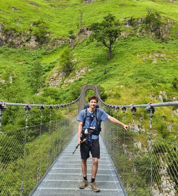 Un jour vers septembre 2024, alors qu’il scrollait sur les réseaux sociaux, Yoann a découvert l’HexaTrek, ce fameux parcours de randonnée reliant le Pays basque à l’Alsace en traversant tous les massifs montagneux français : « Étant un grand passionné de randonnée, je me suis tout de suite mis l’idée en tête de le parcourir en entier », explique-t-il. « J’ai immédiatement voulu y ajouter une dimension « débrouillardise », en bivouaquant sur place, ainsi qu’une dimension caritative, en marchant pour une association », ajoute-t-il. Ainsi, Yoann Rémy a monté le projet Le Rorqual des montagnes pour soutenir l’association À chacun son Everest, basée à Chamonix : « Cette dernière accompagne des enfants atteints de cancer ou de leucémie, et des femmes en rémission d’un cancer du sein, pour les aider à affronter la phase délicate de l’après-cancer et qu’ils puissent retrouver confiance, joie de vivre et un nouvel élan de vie ».