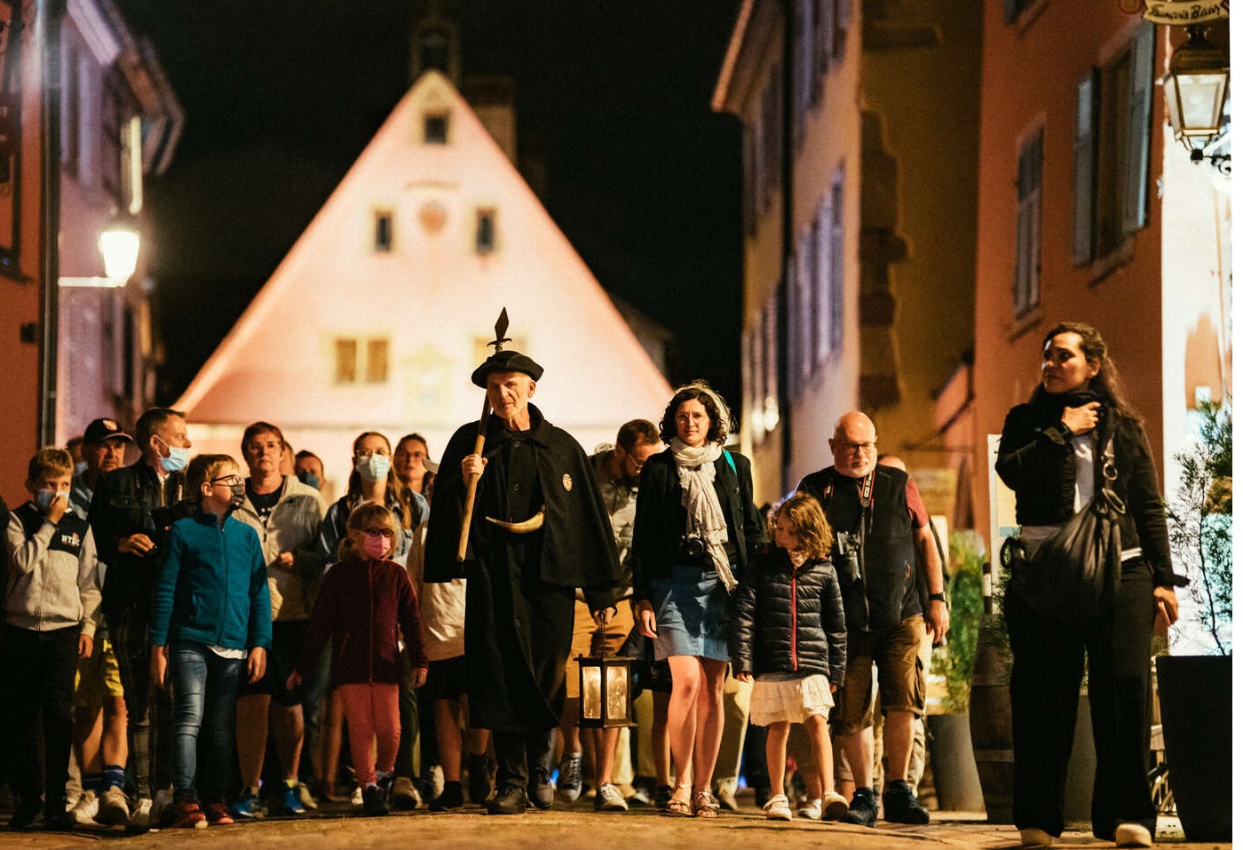 Un tricorne, une hallebarde, un cor et une lanterne au milieu du marché des Lutins (jusqu’au 30/12 sauf le 25) : c’est le veilleur de nuit, symbole de Turckheim, qui vous convie à sa ronde. À travers la vieille ville dont il connaît l’histoire depuis 1540, il contera des anecdotes accompagnées de son chant en alsacien au départ de la fontaine du Corps de garde à 21h. Le 31 à minuit, il sera accompagné des notables de la Ville.