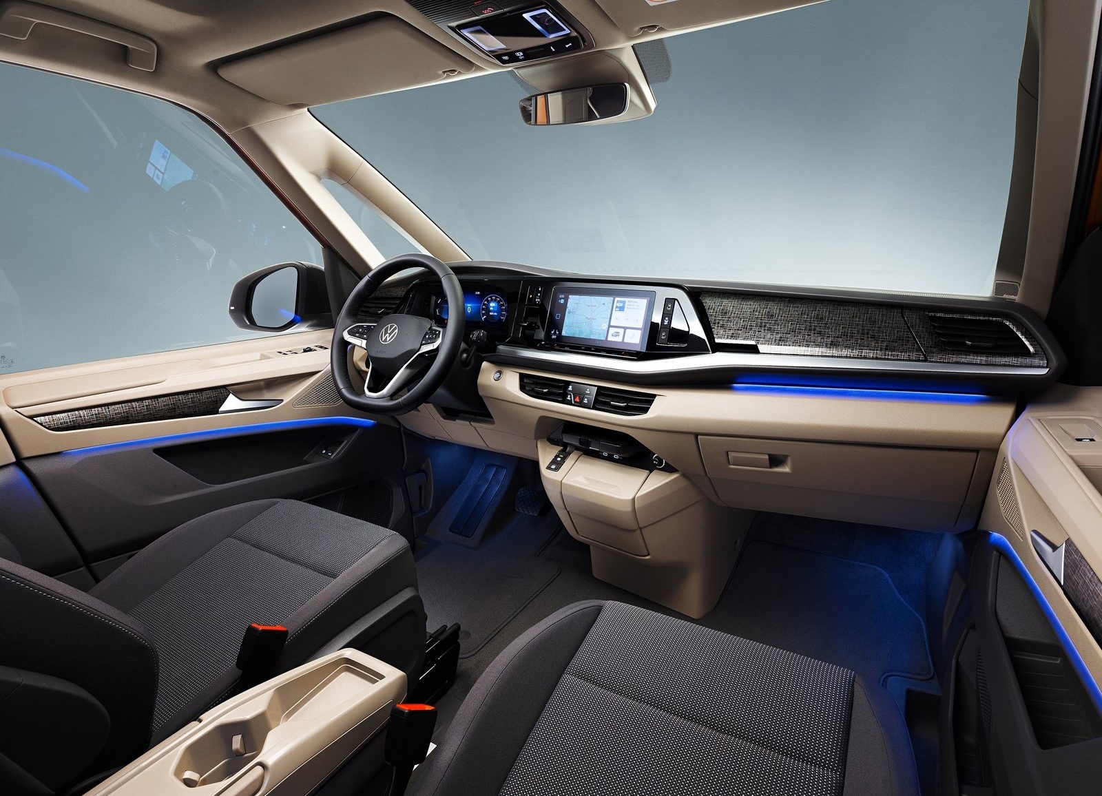 Le Multivan 2021 est plus long de 7 cm (4,97 m) et plus large de 4 cm (1,94 m) que son aîné, tout en étant moins haut (- 4 cm) pour un style plus sportif. L’habitabilité est toujours aussi bonne même si la version longue pâtit d’un empattement plus court qu’auparavant à cause des limites de la plateforme MBQ. Celle-ci se rattrape en ouvrant au Multivan l’accès à pas moins de 20 aides à la conduite, une première sur ce type de véhicule. L’effet produit par l’intérieur, moderne sans ostentation, confirme le rapprochement du Multivan avec le reste des fleurons de VW comme le Tiguan. On est assez proche du niveau de finition et d’équipement de ces grandes stars ainsi que de leur niveau de qualité perçue. Jamais le Multivan n’aura été aussi bien fini et équipé à l’image de l’écran tactile central et de l’instrumentation numérique.