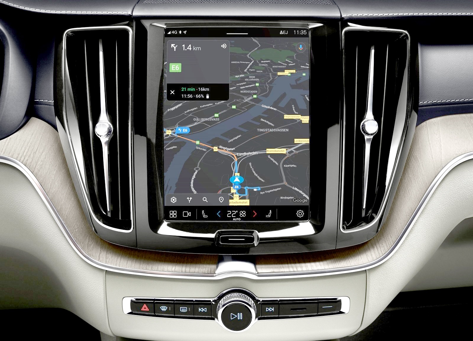 Cette volonté de préserver l’équilibre parfait de la proposition initiale se retrouve à l’intérieur. Volvo ne joue pas dans le surarmement d’écran tactile. Ici, le nouveau dispositif repose sur une dalle 9’’, placée à la verticale comme chez Tesla. L’instrumentation digitale est de rigueur mais on est loin de la débauche visuelle de BMW ou Mercedes. Il faut dire que Volvo a toujours préféré les habitacles conviviaux et sereins aux démonstrations de force. Puisque l’on est sur l’écran, on remarque que c’est désormais Google qui est aux commandes pour une expérience à la fois complète et intuitive. On apprécie particulièrement le fait que la cartographie puisse désormais s’afficher entre les compteurs, simplifiant grandement le guidage.